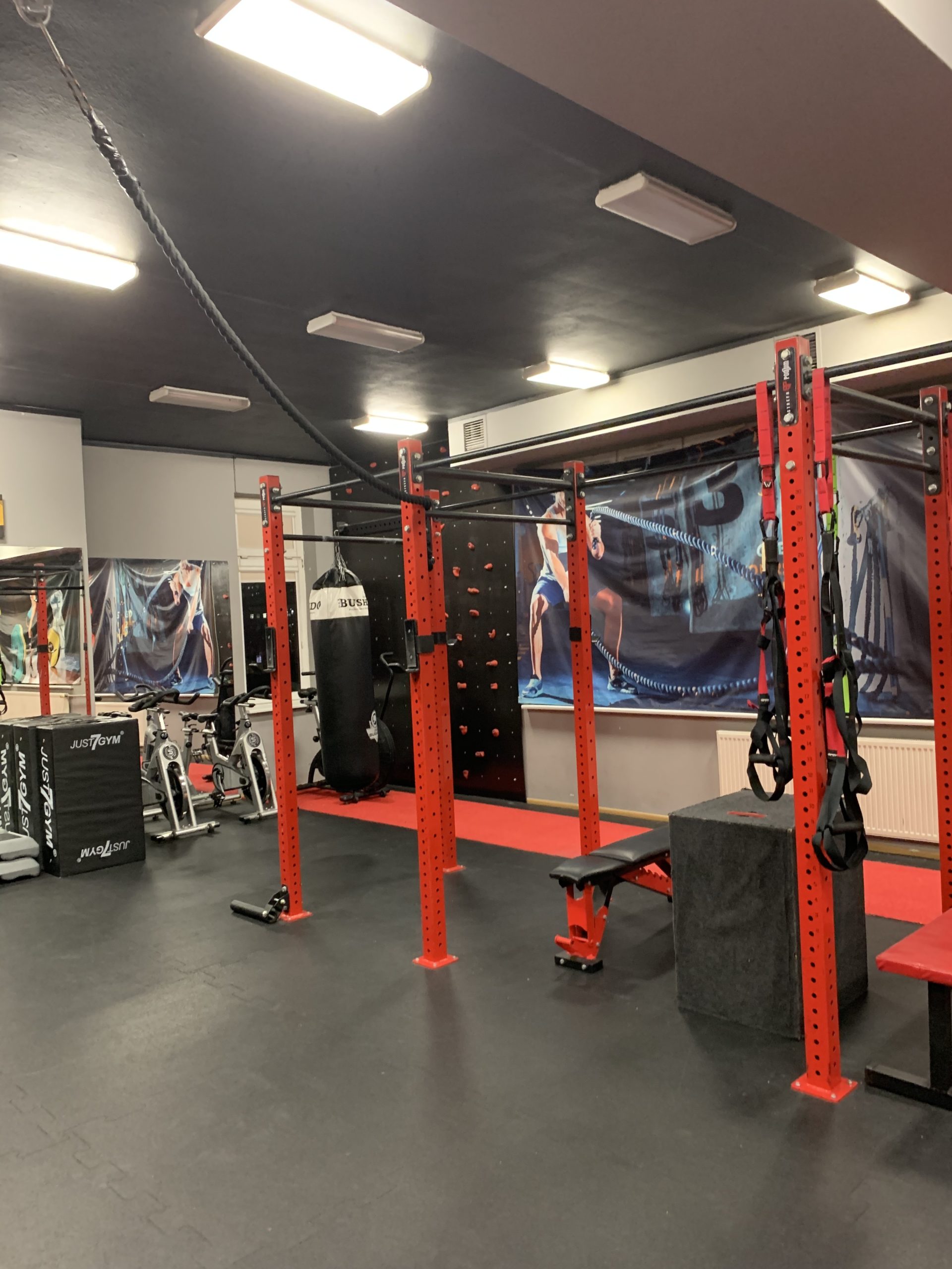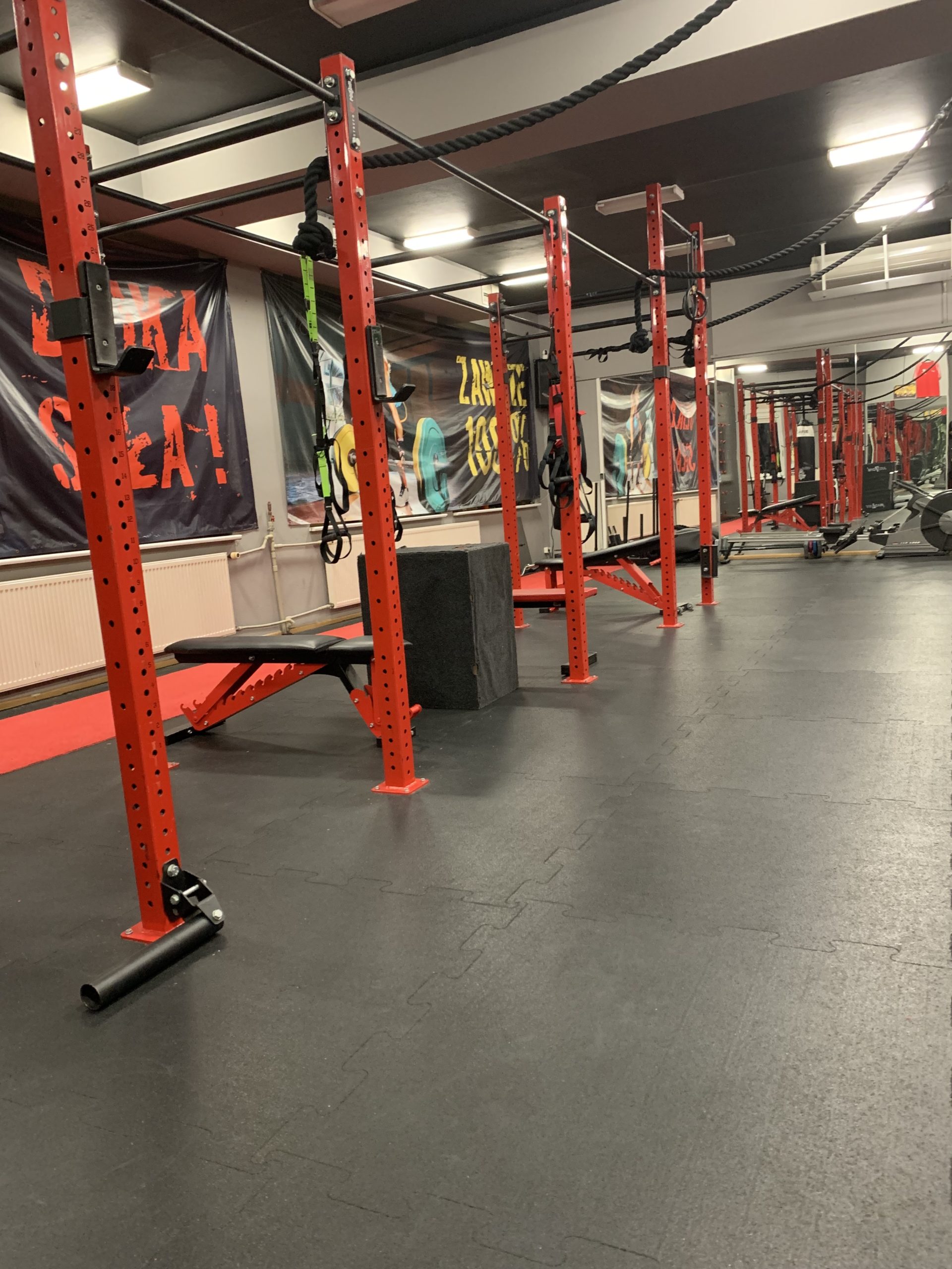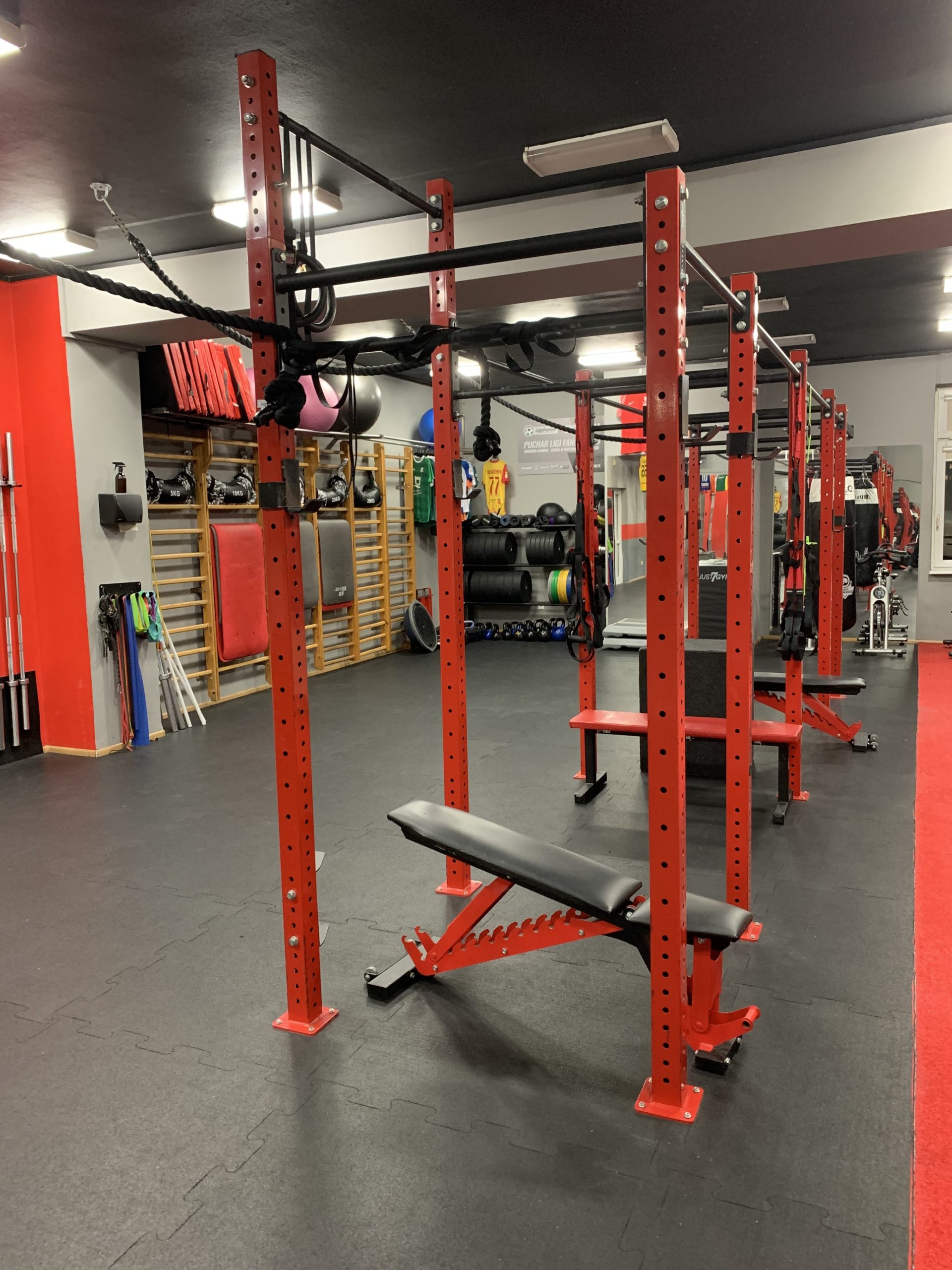 Przestrzeń jest w pełni wyposażona w profesjonalny sprzęt treningowy, umożliwiający prowadzenie zarówno zajęć indywidualnych, jak i pracy w grupach. Układ sali pozwala na płynne łączenie elementów treningu siłowego, dynamicznego i koordynacyjnego – dokładnie tak, jak wymaga tego nowoczesny sport.